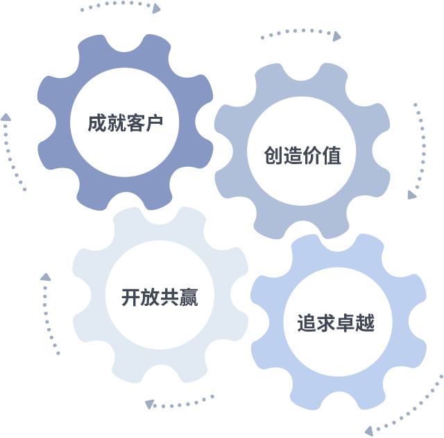 成就客户是一切决策的出发点,创造价值是衡量所有工作的标准,追求卓越是中国·新葡的京集团35222做事做人的态度,开放共赢是中国·新葡的京集团35222的格局也是最终的结果。价值观的齿轮环环相扣,推动着组织里的每个人不断向前。